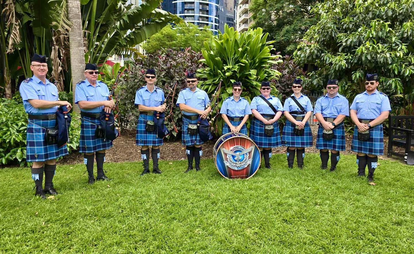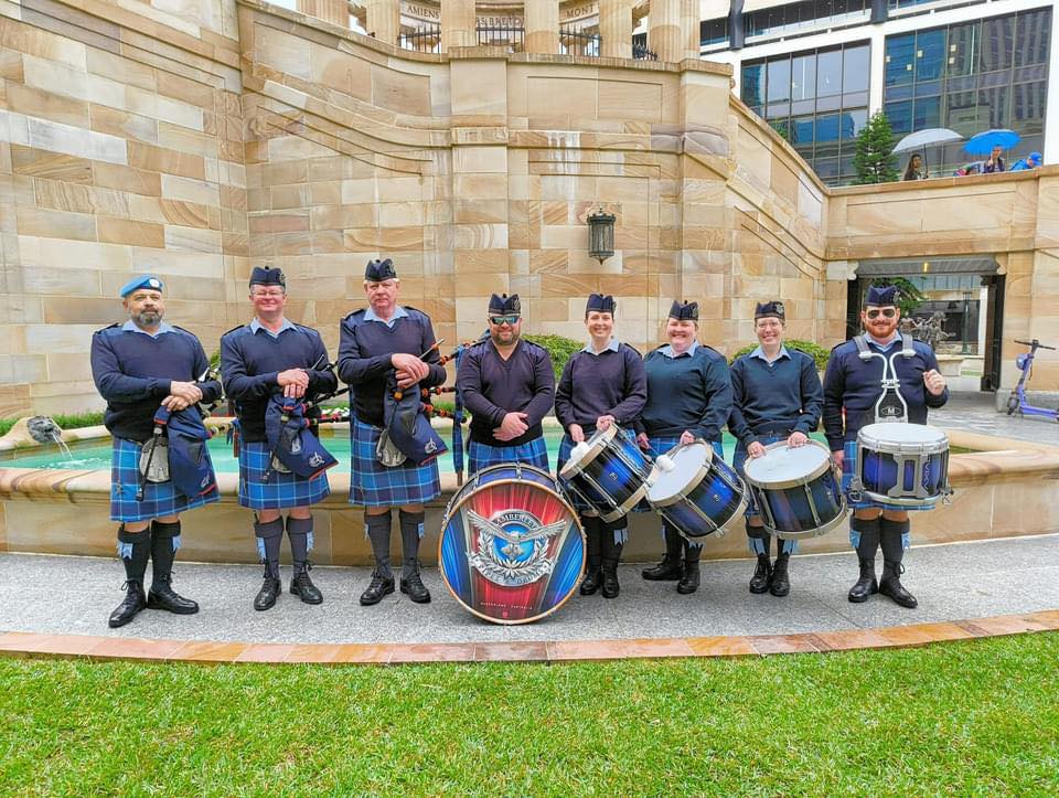 Established in 1999 by personnel of RAAF Base Amberley, and now comprised of Civilian and Military members, the band proudly provides Piping and Drumming services to the community, as well as the Defence Force, and for Veteran Support organisations.