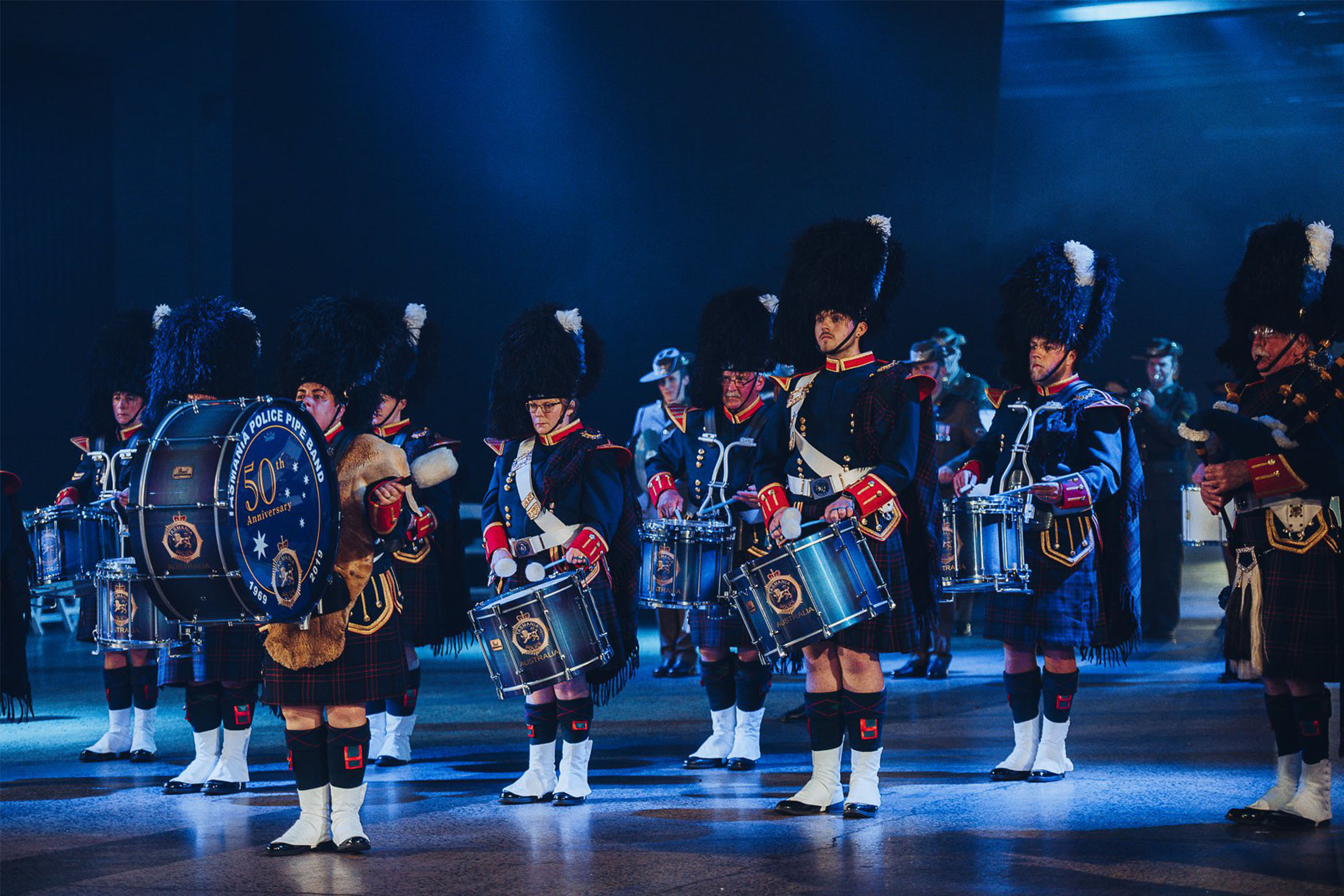 The Tasmania Police Pipe Band was formed in 199 and wears the Fletcher of Dunans tartan, in honour of the Police Commissioner at that time, Mr Phil Fletcher. It celebrated its 50th anniversary in 2019 with a celebration and performance at Princes Wharf No 1.