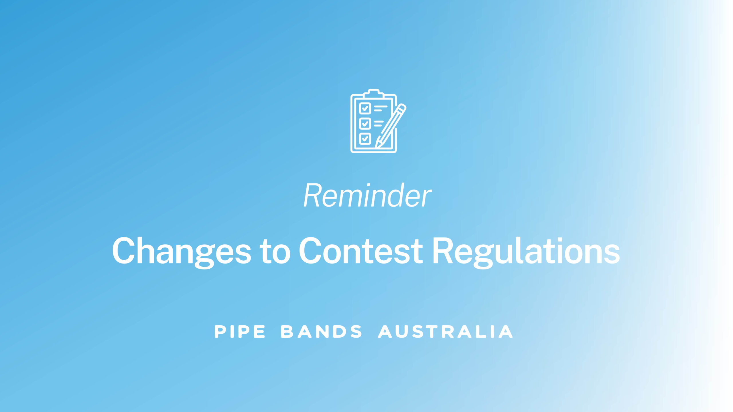 Following resolutions passed at the 2025 Pipe Bands Australia Conference, amendments to the Pipe Bands Australia Contest Regulations will come into effect on 1 March 2026.